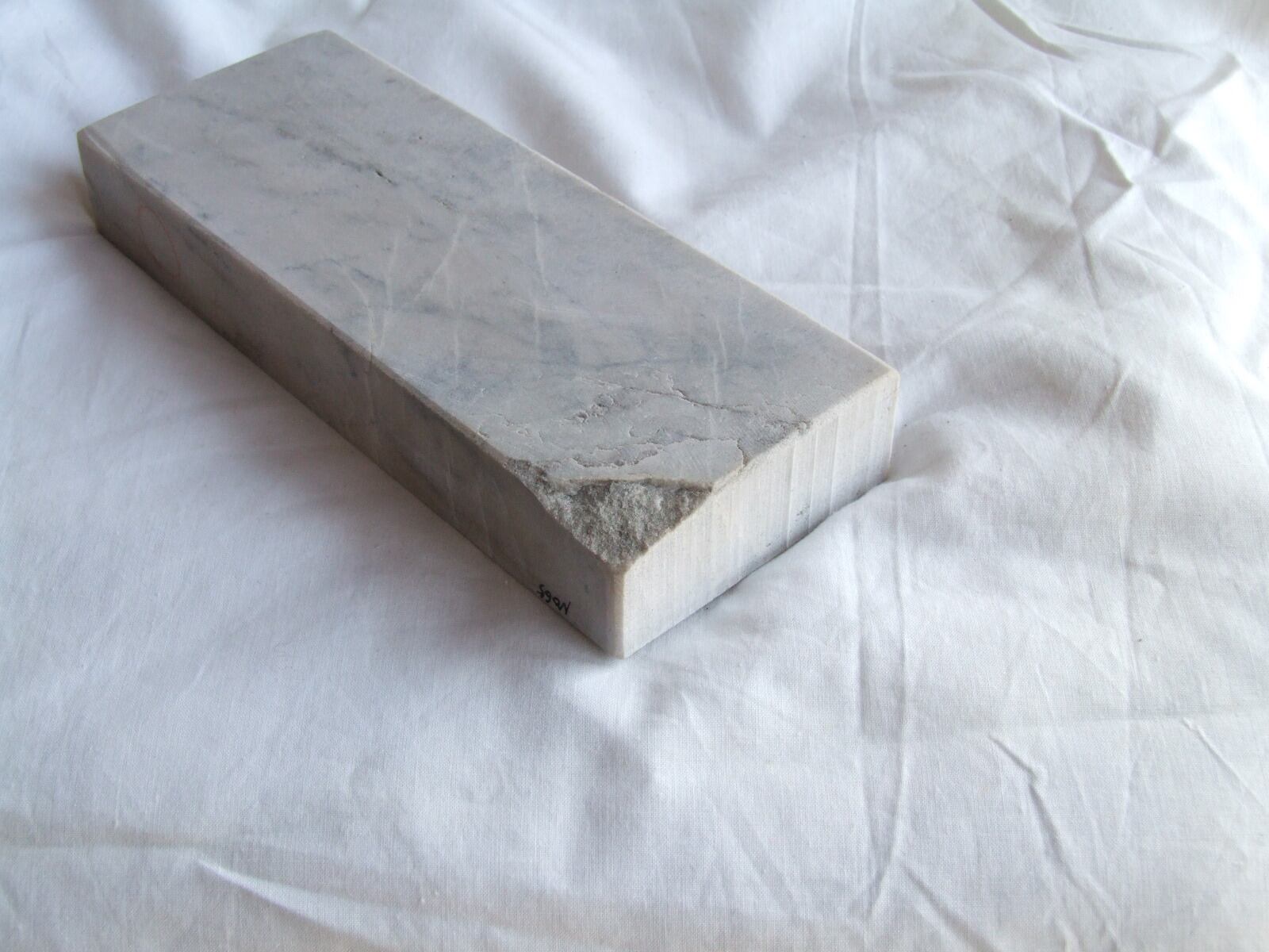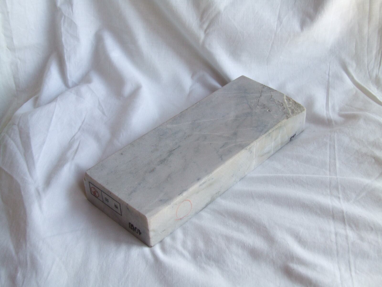 砥石としての性能は最高峰でこの石の場合およそ#6000程度の番手があり、どんな堅い刃物鋼にも対処する事が可能です。ZDP189やHAP72であっても問題なく仕上げる事が出来ます。