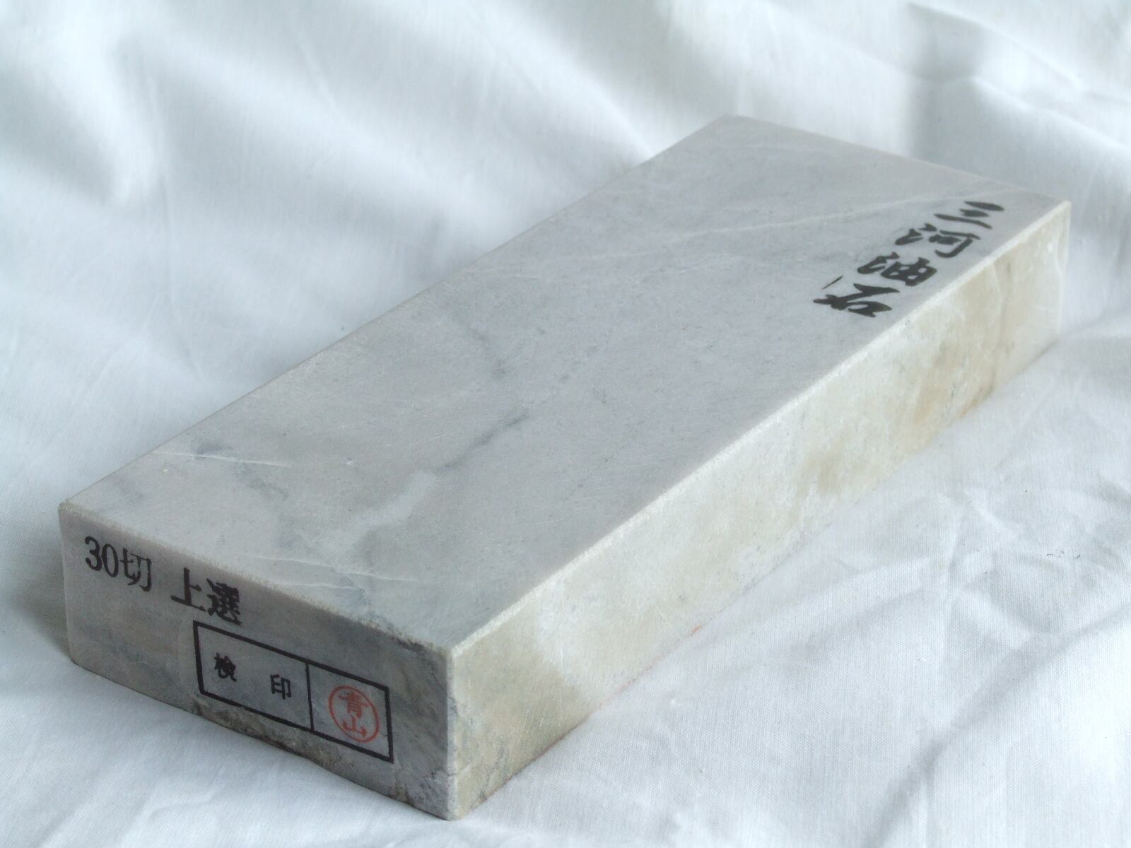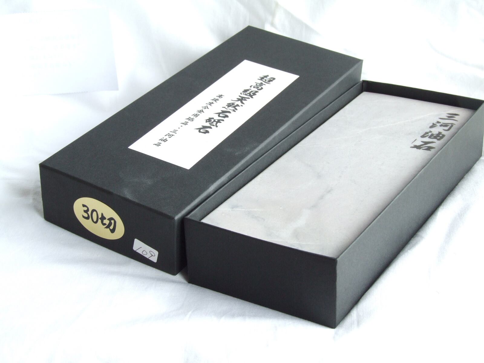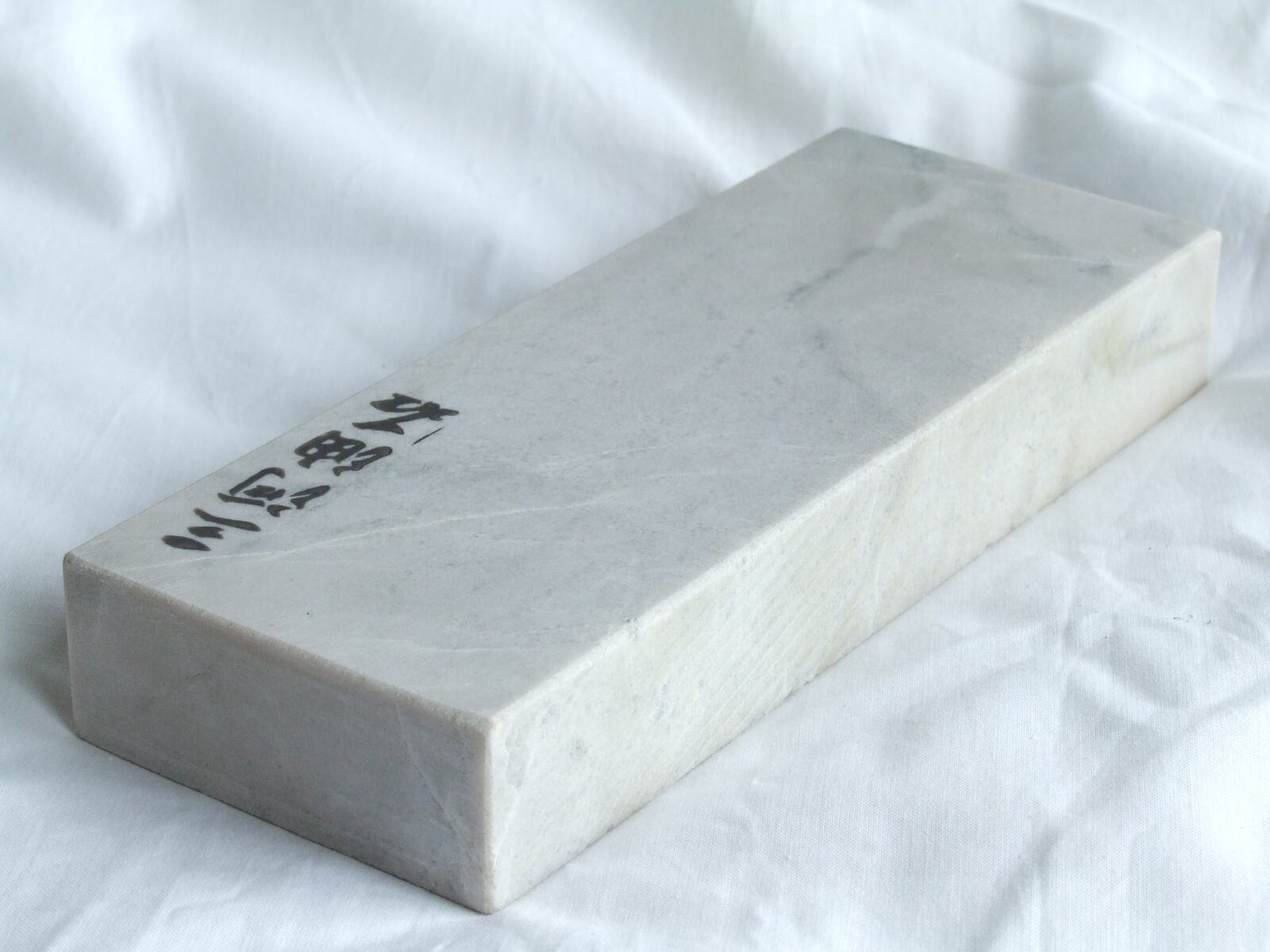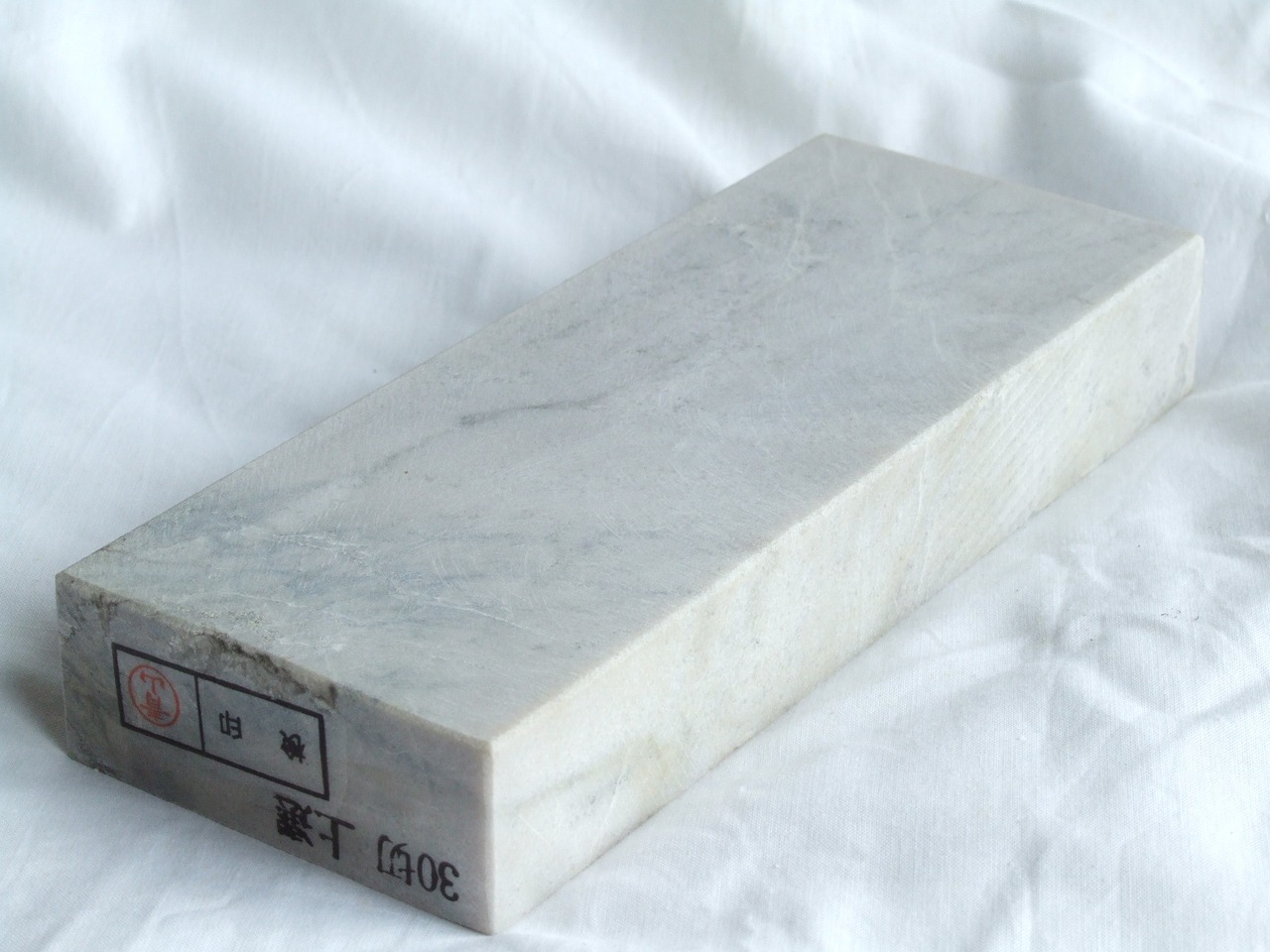 砥石としての性能は最高峰でこの石の場合およそ#6000程度の番手があり、どんな堅い刃物鋼にも対処する事が可能です。ZDP189やHAP72であっても問題なく仕上げる事が出来ます。