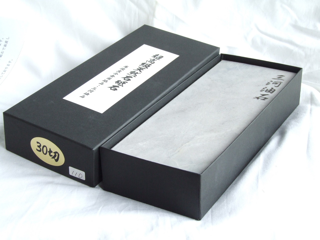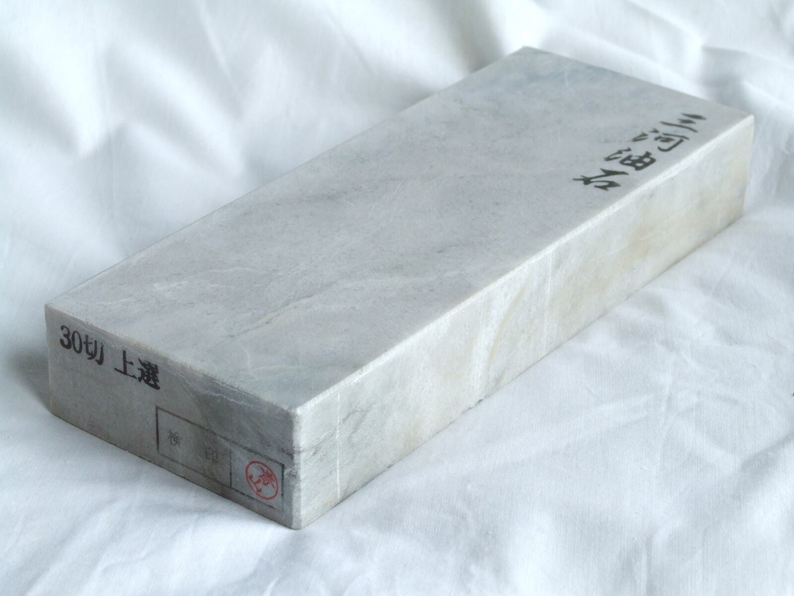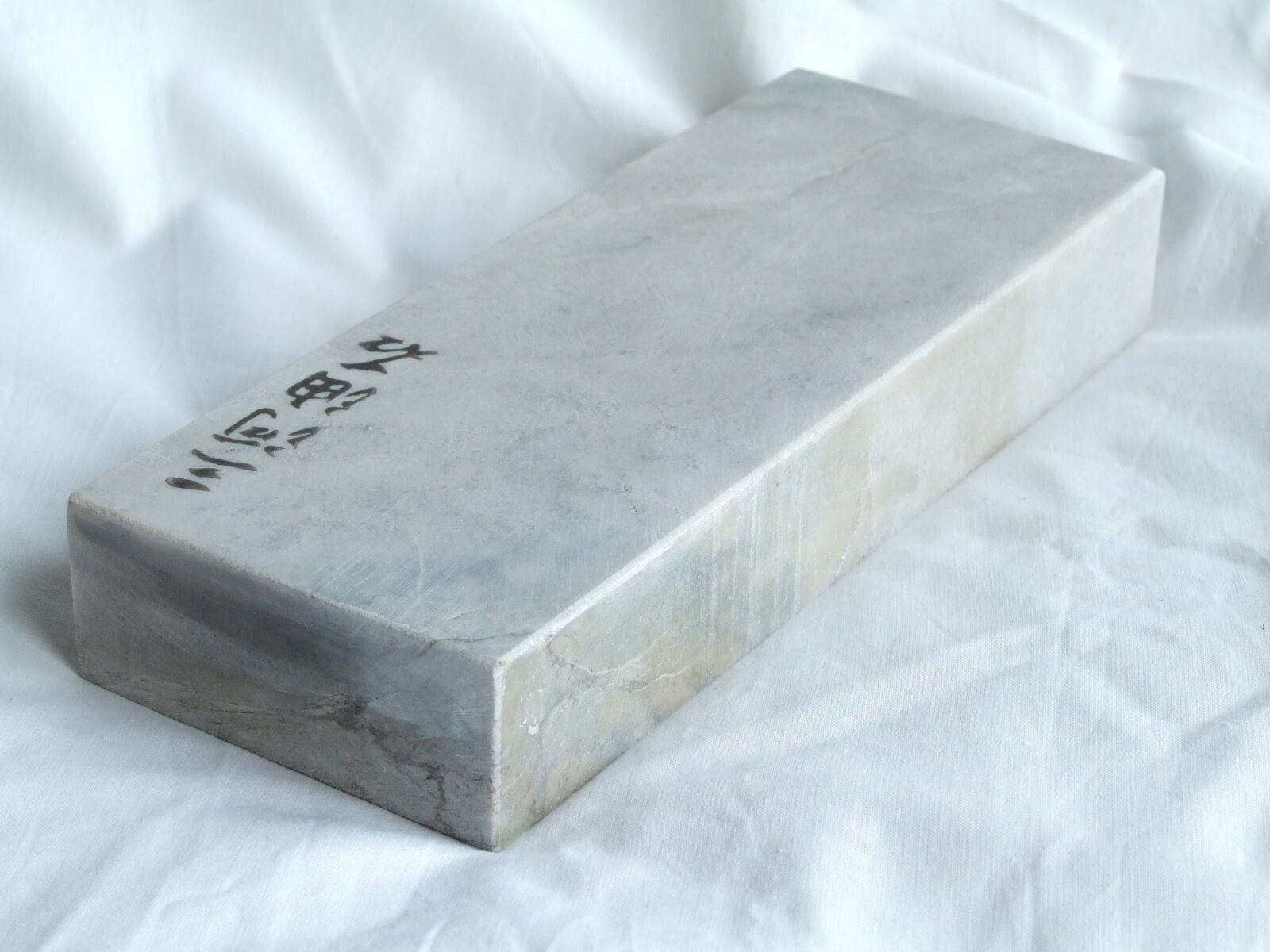 砥石としての性能は最高峰でこの石の場合およそ#6000程度の番手があり、どんな堅い刃物鋼にも対処する事が可能です。ZDP189やHAP72であっても問題なく仕上げる事が出来ます。