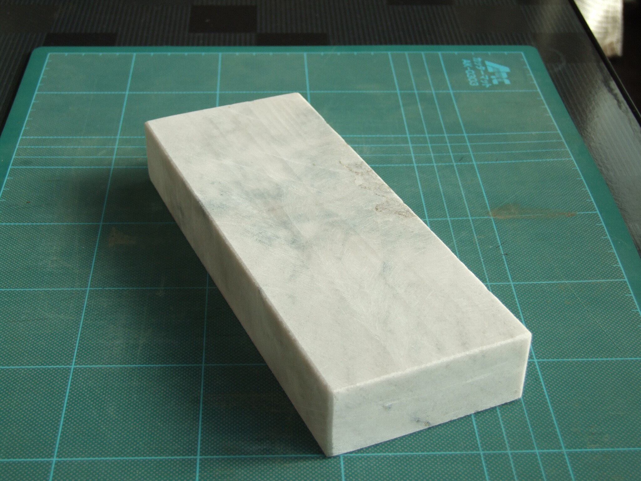 砥石としての性能は最高峰でこの石の場合およそ#6000程度の番手があり、どんな堅い刃物鋼にも対処する事が可能です。ZDP189やHAP72であっても問題なく仕上げる事が出来ます。