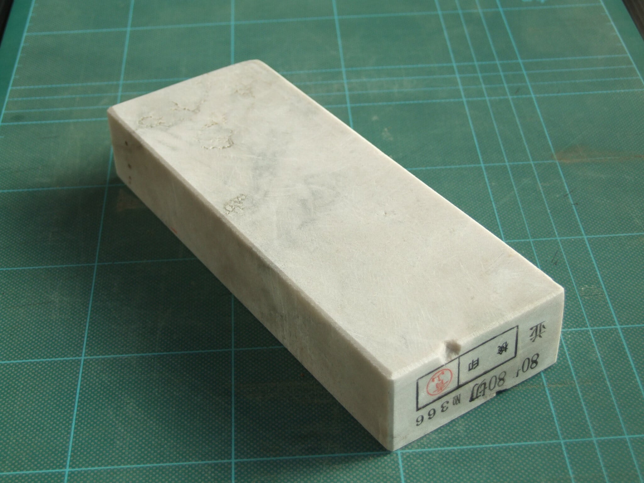 砥石としての性能は最高峰でこの石の場合およそ#6000程度の番手があり、どんな堅い刃物鋼にも対処する事が可能です。ZDP189やHAP72であっても問題なく仕上げる事が出来ます。